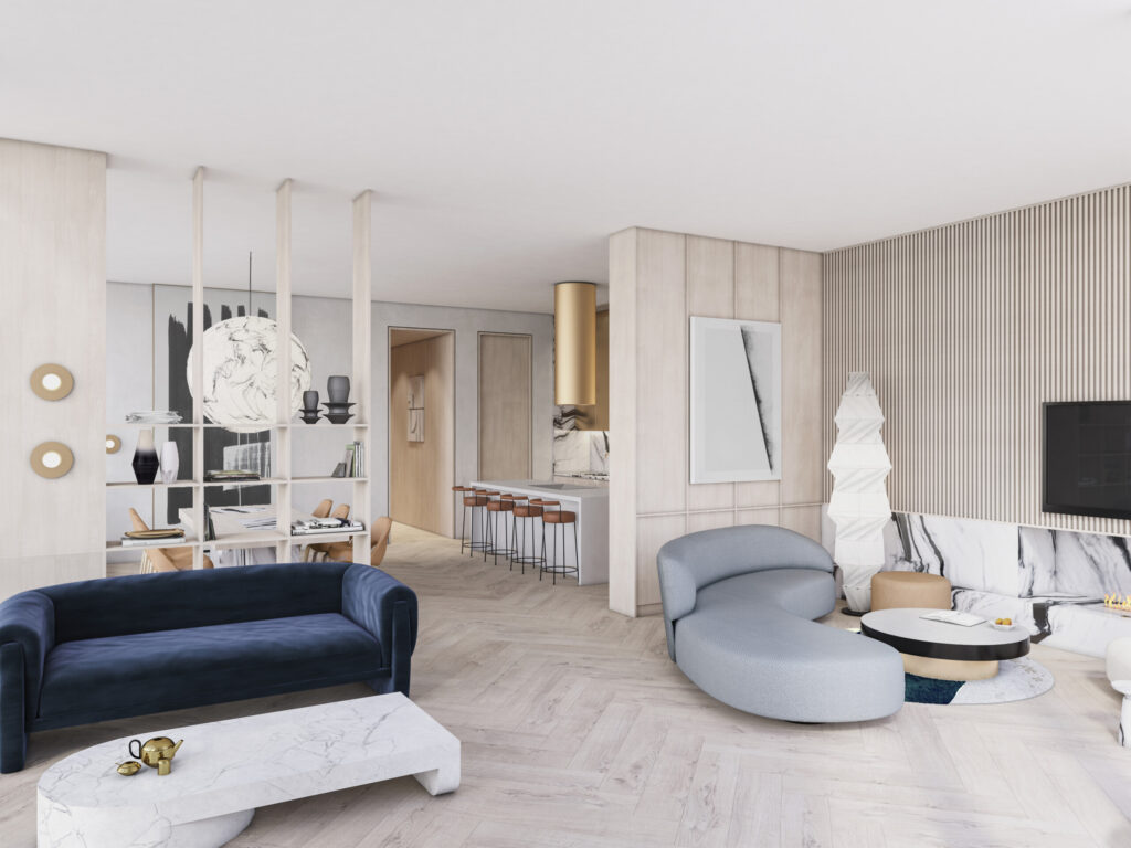 The Premium Two-bedroom Apartment balances flexible spaces with an exclusive venue, all overlooking the treetops of Parliament Gardens and Melbourne CBD.